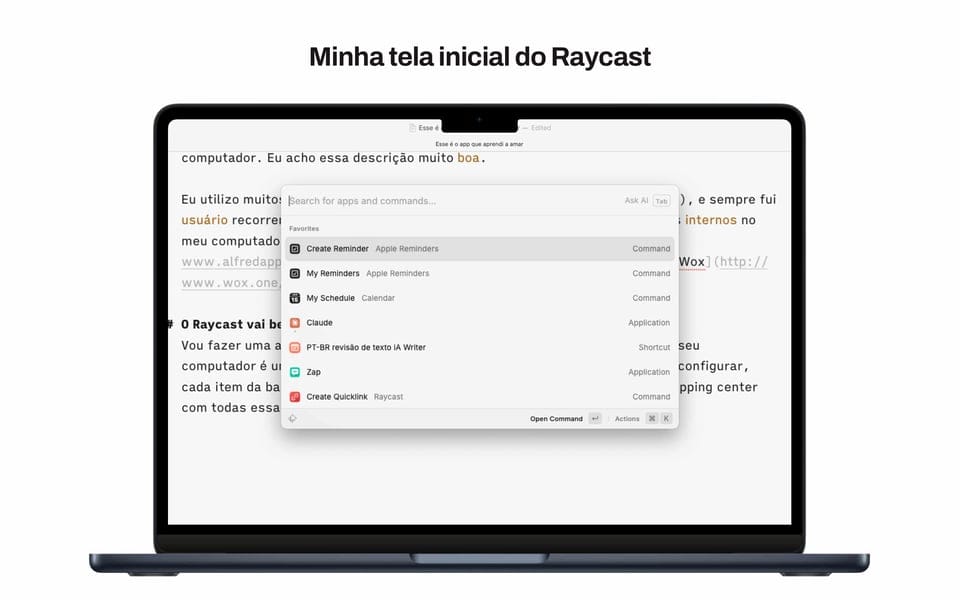 Em jan.2025 eu escrevi nesta mesma Appetrecho que o Raycast tinha saído de zero para meu app principal em menos de um mês, e isso ainda se mantém. Eu uso Raycast todo dia, pra quase tudo – de calculadora até abrir apps e checar cotações de ações e fazer prompts rápidos de IA. É bom demais.